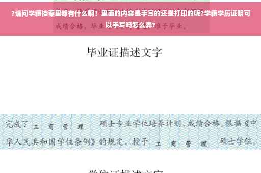 内容是手写的~表格是打印的~你高中的是你的第一份档案,大学是第二份,依次类推~没换一个单位,给你加载你的个人档案~里面包括,你的小学、初中、高中什么的都是在哪念的,老师的评价,个人是否受过奖励、处罚等等~总是,就是你的一切的记录~