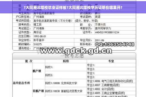 大同雁北煤校的毕业证样板可以参考下述示例:大同雁北煤校是一所具有悠久历史的煤炭工业学校,其毕业证样板采用了红色背景、黑色字体、烫金字体等元素,突出了学校的品牌和特色。