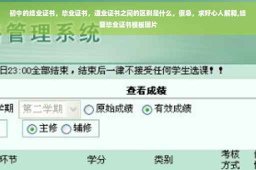 毕业证书表明,学生在某一层级的学校系统的学习了相应的学历的教育课程,并且达到规定的合格标准,不同级别的学历教育有不同级别的毕业证书。而结业证书只是表明该学生在某一级学校系统的学习了相应的学历教育课程,学完规定的学业课程,但是部分课程并没有达到合格标准。按照我们的现实的规定,也就是如果一个学生在校内有30%的学分没有通过,或者是某些必修课程没有通过,或者是补考重修的课程总数达到一定的数量都会不能给予毕业证书,而只给予结业证书。