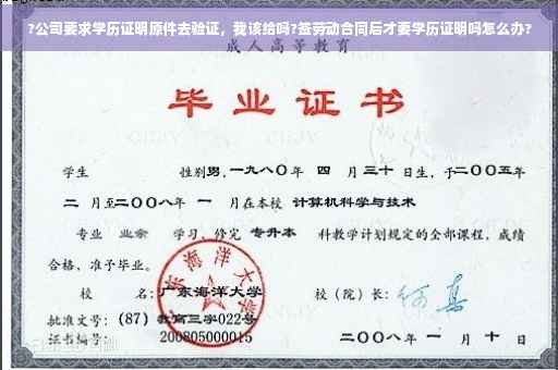 有的公司是直接在网上输入你的毕业证书号验证就可以了,有的是要拿到人才市场去出一份验证证明,这种其实你可以自己去人才市场办,而且验毕业证是需要放在人才市场几天的,不放心公司的话,你可以自己去办这个验证证明,现在要拿原件的比较少了,一般就是拿原件看一下而已,你可以问一下能不能自己去验证,不行的话就问清楚要几天,是不是只有你一个人需要这样还是一批人一起去验证的,毕业证丢失是很麻烦的事情,留点心没错的。
