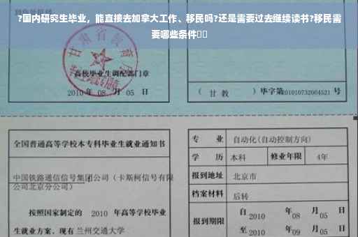 研究生毕业的话,想直接去找工作还是有点难度的,想移民的话,也要看你个人的条件,看看适合哪种方式移民。一般来说如果没有在加拿大的工作经历,或者雅思不足够好的话,很难直接移民的。如果年纪不大,建议先去留学,再考虑移民