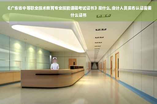 广东省中等职业技术教育专业技能课程考试证书是省教育考试院颁发的。有14类课程:电工证书,电子证书,机械证书,土木工程证书,化学证书,旅游证书,会计证书,教育基础综合证书,生物技术基础证书,美术基础证书,音乐综合证书,体育技能证书、护理证书、烹饪证书 考其中一种就行。1、在国税局办理会计实名制认证,一般只需要本人带上居民身份证原件(可以扫描芯片资料) 、 单位营业执照(三证合一)正本和副本,公章,财务章,法人章。一般纳税人资格认定等按当地要求的进行办理。