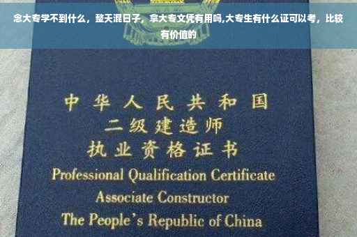 大专生可以考的有价值的证很多,学历只代表过去,学习的能力即学力和劲头才是主要的,推荐你如果有空可以考一考中级经济师证、软考高项证等证书,一者这几个证书报名限制较少,对学历要求少,对工作年限也不做多要求,尤其是高项证报考啥条件都木有,小学文化都可以报;二者这几个证书的考试内容较少,如经济师考试内容是两本书,一本专业课一本基础课,认真看书俩月必搞定。高项证就一本书,翻来覆去看几遍三个月差不多就冲过去了,轻松!三者这几个证拿到手就是走遍天下都不怕,为啥?因为这是国家部委颁发的,全国通用的,经济师证在单位可应聘中级职称,高项证可应聘副高级职称,不用劳心费神评审即可。