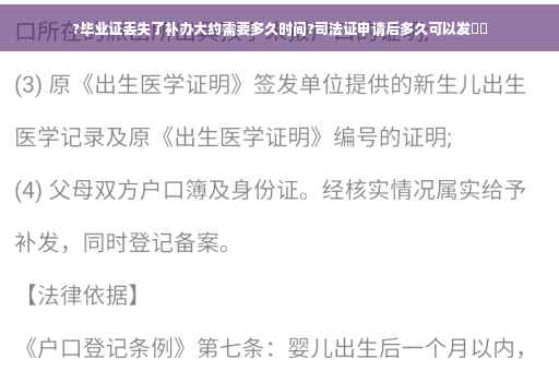申请毕业证明书,办理时限大约为1个月左右,根据每个学校的效率不同时间稍有不同。按照《教育部办公厅关于规范高等学校学历证书有关事项的通知》的规定,高校毕业生的毕业证书遗失后,可以申请补办学历证明书,不能补发证书。学历证明书内容与原证书基本相同,贴本人免冠照片,盖毕业学校印章并有编号。学历证明书和原证书具有同等效力。毕业证书丢失后,本人首先应在有国内统一刊号的报纸上刊登遗失声明。然后填写补办申请书,最后携带遗失声明的报纸原件和本人有效证件到学校教务处学籍成绩科补办手续,学籍成绩科对情况核准后,即可补发学历证明书。拓展资料:毕业证遗失需办理学历证明书的学生,需准备以下资料: