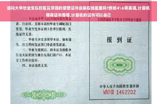 大学毕业生在校期间获得的荣誉证书会,例如4\6级英语,计算机等级证书等等.这些东东是国家认证的,当然会有记录的,当然不是把证书放在里面,放不下,但是里面有你的记录:如XX年,XX以XX分通过了国家英语四级等.但是另外的一种情况,如:你在学校的演讲比赛得奖,在作文大赛里面得奖,或者就是说班上或者社团里面获得奖,如果你上报了的话,会在你的每学期的记录上获奖情况那一栏有的,如果没有上报的话就没有了.学校现在应该都有素质拓展的认证吧,上面有详细的记录.北京反正基本的学校都有!放心吧,四六级,计算机啊是有的!!!:)