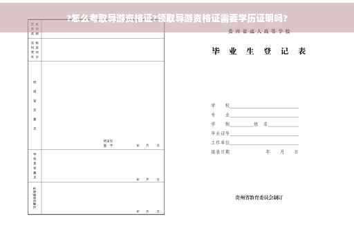 3、学历条件:高级中学、中等专业学校及以上学历。 导游证的报考流程是: 1、在所在地的旅游局招考办报名或在全国旅游监管服务平台进行报名; 2、填写信息:包括姓名、籍贯、民族、证件号码、户籍所在地等; 3、培训:在旅游局指定的地点参加培训;