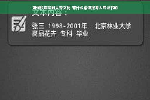 最快的办法是参加自学考试获得。自学考试每年兴行两次,考生智商足够好的话,每次可以报考4科,一年可极考八科,最多一年半就考完了,只要所参科目考试都及格,就可以了拿到大专毕业证书了。