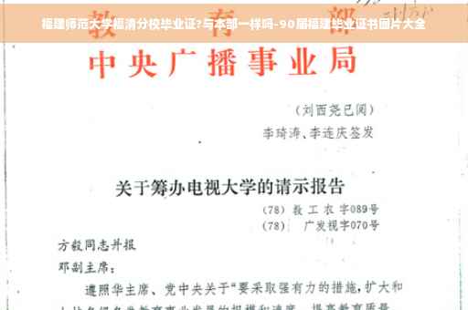 一样的,都是福建师范大学毕业证书,校长也一样的,福建师范大学分为仓山校区和福清校区,福建师范大学福清分校在福清市校区,虽然福清分校在高考录取时分数比总校低一点,但是也是本二头,甚至高于本一线,但是毕业证与师大本部是一样的。