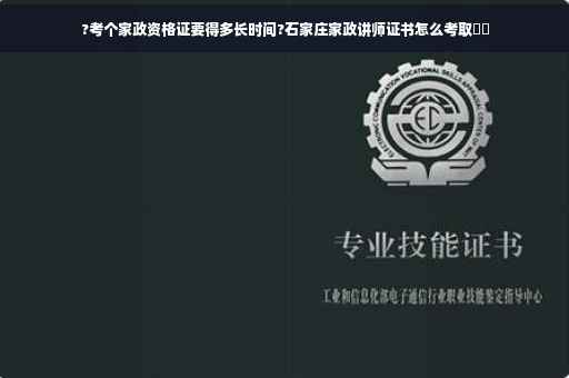 家政类证书的培训时间一般不会太长,一周左右,大概一个月就可以拿到证书了,但是要注意不要拿到假证,现在市场上有很多证书种类,比较正规的是中国成人教育协会颁发的,他们的证书在教育部网站可查,而且可以跟国开学分银行对接,给你颁发学习成果存储证明书,还可以作为“双证”毕业证书考核项目,反正价值是目前市场上很高的。