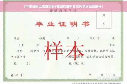 中专学历(毕业证)在发证省教育厅网站上查询,也可在你毕业证照片上加盖钢印的单位人工查询学号和毕业证编号。