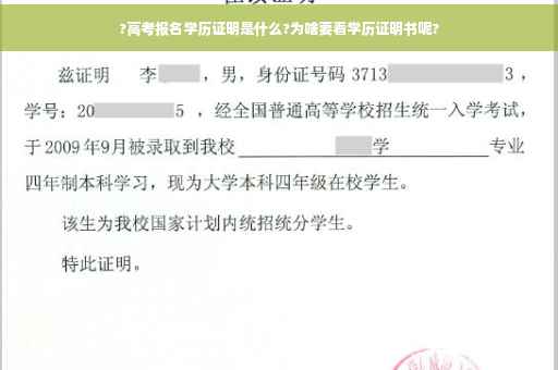 以吉林省为例,常住户口考生普通高考报名条件:1、遵守中华人民共和国宪法和法律;2、高级中等教育学校毕业或具有同等学历;3、身体状况符合相关要求。非常住人口但符合在吉林省报考的条件,除普通高中生外,中等职业教育(中等专业学校、技工学校、职业高中)考生,也可报名参加普通高考。可见高考报名学历证明是高中或高中同等学历。