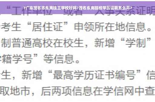 好。茂名市东南高级技工学校创办于1995年,广东省教育创新示范学校。学校是经广东省人力资源和社会保障厅批准成立。按国家技师学院标准建设并通过评审的全日制高级技工学校,是省级重点技工院校、省职业指导教学训练基地。