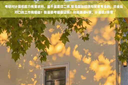 六是从事教学研究。 考证,英语六级、计算机二级是必要的,尤其外语等级分数越高越好。其它专业证书,并不太重要,近年国贸岗位对证书并没有要求,做外贸外销员、跟单员、报关员、外贸会计等证书也可考虑考一下。如果将来打算进入金融机构就业,可考银行从业资格、证券从业资格、基金从业资格。