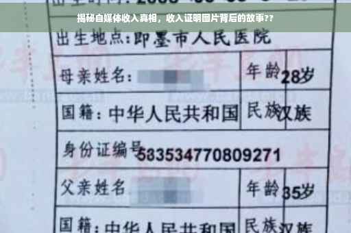 随着自媒体的兴起,越来越多的人投身于自媒体行业,希望通过创作内容实现自己的价值,而收入证明图片,作为展示自媒体人成果的一种形式,背后隐藏着许多故事,这些图片展示了自媒体人的收入状况,也反映了自媒体行业的竞争与机遇。