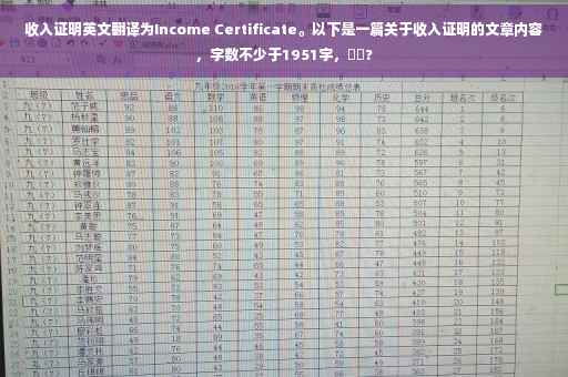收入证明的英文翻译为“Income Certificate”,以下是一个示例: