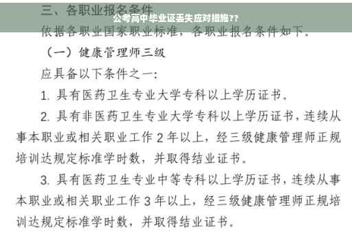 面对公考高中毕业证丢失的情况,考生应保持冷静,及时采取措施,在办理过程中,注意保留好相关证明材料,及时向相关部门咨询并遵循其指导,建议考生在日后妥善保管各类证件,避免类似情况再次发生,希望通过本文的介绍,能帮助考生顺利解决公考高中毕业证丢失的问题,顺利参加公务员考试。