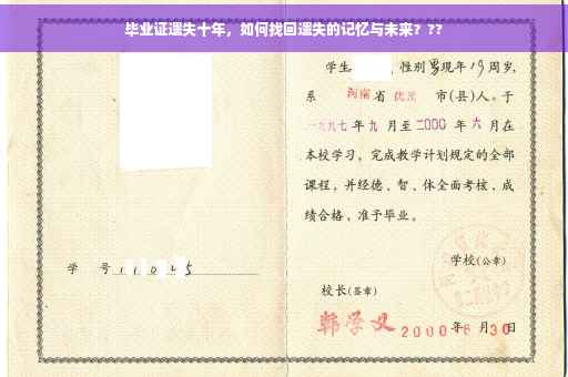 十年前的那个夏天,我满怀激动的心情领取了人生中第一份重要的证书——毕业证书,时光荏苒,岁月如梭,如今我已经步入社会多年,却发现那份曾经珍视的毕业证书已经遗失十年之久,面对这一困扰,我深感焦虑和无助,在经历一番挣扎和探寻之后,我逐渐找回了遗失的记忆与未来,本文将分享我的经历,希望能为同样遭遇困境的你带来启示和帮助。