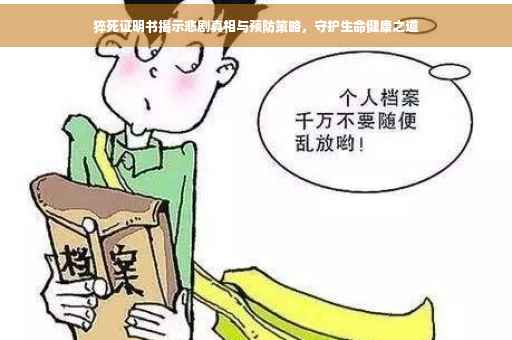 摘要:猝死证明书是一份重要的文件,它揭示了悲剧背后的真相。通过这份证明书,我们可以了解到猝死的原因和预防措施。猝死是一种突然发生的死亡,往往无法预测和预防,但它可能与生活方式、健康状况和环境因素有关。了解猝死的原因可以帮助我们采取积极的措施来预防类似事件的发生。猝死证明书不仅是悲剧的见证,更是提醒我们关注健康、预防悲剧的警钟。