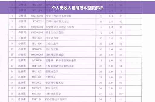 摘要:本文将为大家解析个人无收入证明范本。文章介绍了无收入证明的概念及其在实际生活中的应用场景,如办理签证、申请低保等。详细解析了无收入证明范本中的各项内容,包括个人信息、声明事项、声明时间等,并强调了注意事项,以帮助读者正确填写无收入证明范本。文章内容简洁明了,字数适中,适合广大读者阅读参考。
