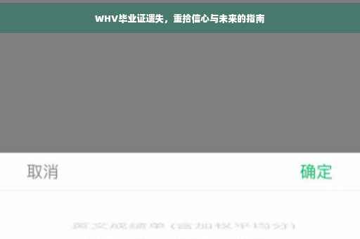 WHV毕业证遗失不必过分焦虑,重拾信心与未来有方法。面对这一困境,首先要冷静思考,回忆可能遗失的地点并尝试寻找。若无法找回,可联系颁发机构获取证明或补发证书。积极面对未来,调整心态,寻找其他证明自己能力的机会,如积累经验、提升技能等。失去一张证书不代表失去未来,重要的是重新找回信心,积极面对生活挑战。