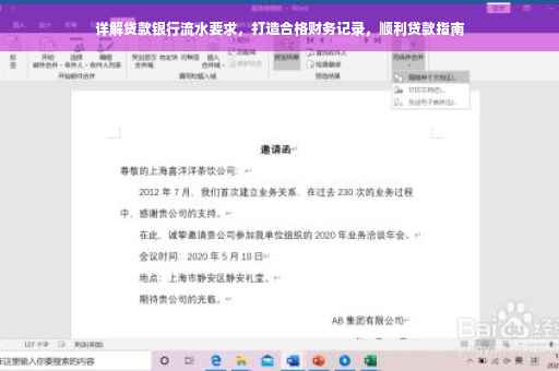 摘要:本文将详细解析贷款银行流水要求,教你如何打造合格的财务记录,以轻松获得贷款。了解银行流水的重要性,掌握合格流水的标准,包括收入稳定性、支出合理性等方面。通过合理规划财务记录,提高贷款申请成功率,顺利解决资金需求。