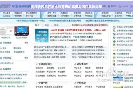 近年来,随着社会的快速发展,银行业务日益普及,一些人为了应对各种需求,包括贷款申请、信用卡办理等,开始寻求一种不正当的方式——代做银行流水账,这种行为背后隐藏着巨大的风险,不仅可能触犯法律,还可能给个人带来严重的经济损失,本文将深入探讨代做银行流水账背后的真相与风险,揭示这一行为的危害。