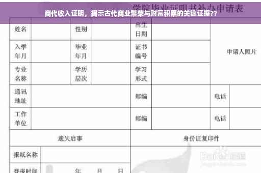 商代,作为中国古代历史上的一个重要时期,以其繁荣的商业和丰富的财富积累闻名于世,在这个时期,商业活动日益频繁,商品交换的范围不断扩大,推动了经济的蓬勃发展,本文将围绕“商代收入证明”这一主题,深入剖析商代商业繁荣的背后,人们如何通过商业活动获得财富,以及收入证明在当时社会的重要性。