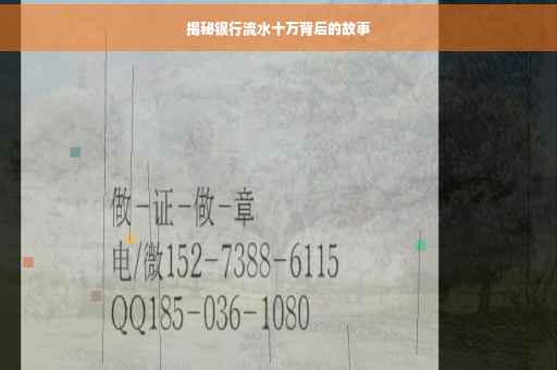 银行流水十万背后隐藏着无数故事,它或许代表着辛勤的成果、创业的挑战、理财的智慧,也可能是生活压力的一种体现,无论它代表什么,我们都应该通过努力、节约、理财规划等方式,提高自己的银行流水,逐步实现自己的目标和梦想。