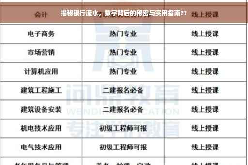 银行流水,作为记录个人或企业银行账户交易明细的文件,在现代社会中扮演着越来越重要的角色,随着金融行业的快速发展,银行流水不仅仅是一张简单的账单,它更是个人经济活动的见证,也是企业和个人信用评估的重要依据,银行流水到底可以做什么呢?本文将为您详细解读银行流水的多种用途及其背后的意义。