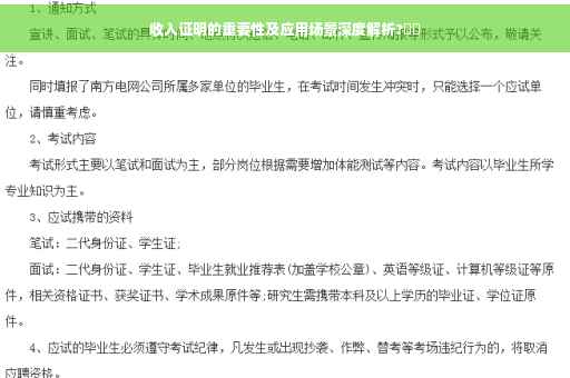 在求职面试部分,可以加入一些面试技巧,如提前准备好收入证明可以展示自己的稳定性和职业规划,在贷款申请部分,可以强调不同种类的贷款对收入证明的具体要求,在信用卡办理部分,可以提到收入证明与信用卡额度之间的关系,在税务申报部分,可以简要介绍税务申报的流程与注意事项,在移民申请部分,可以进一步解释不同国家对收入证明的具体要求和标准,商业合作部分可以结合实际案例,更加详细地解释收入证明的作用。