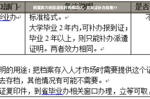 在这个快节奏的社会里,我们时常会遇到各种意外情况,其中之一就是证件丢失,对于很多人来说,毕业证是一份非常重要的证件,它不仅代表着我们的学习成果,更是我们青春岁月的重要印记,如果不幸发生了毕业证丢失的情况,我们该如何应对呢?阿里为你提供了一条可能的解决方案。