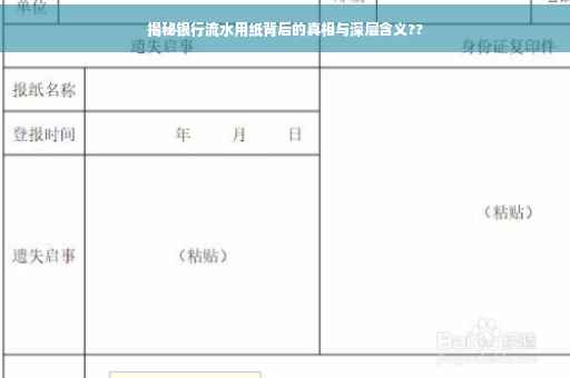 银行流水用纸,这个看似简单的词汇背后隐藏着许多不为人知的秘密,在日常生活中,我们或多或少都会接触到银行流水账单,但很多人对其重要性及背后含义并不了解,本文将带您深入了解银行流水用纸的相关知识,揭示其背后的真相与意义。