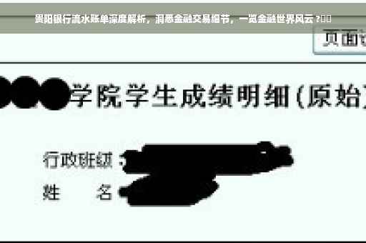 摘要:本文将为您解析贵阳银行的流水账单,通过详细解读账单中的各项金融交易记录,帮助您洞悉金融交易细节。我们将从账单的基本结构出发,介绍如何识别不同交易类型、金额、时间等重要信息,并解析账单中可能出现的各种费用。通过本文,您将能够轻松掌握贵阳银行流水账单的解析方法,更好地管理个人财务。