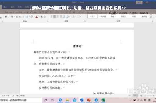 在现代医疗体系中,诊断证明书扮演着极为重要的角色,特别是在中医领域,它不仅记录着患者的健康状况和医生的专业判断,还是患者获取进一步治疗或休息的关键依据,本文将全面解析中医院诊断证明书的功能、格式、重要性,并为您提供使用建议。