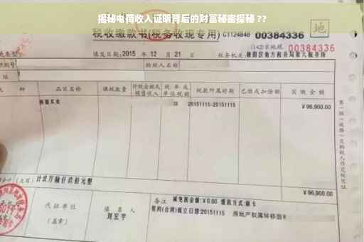 在当今社会,随着科技的飞速发展和人们对金融知识的需求增加,越来越多的人开始关注个人财务状况,电荷收入证明作为个人经济能力的一种重要证明,被广泛应用于求职、贷款、信用评估等方面,究竟什么是电荷收入证明?它背后隐藏着怎样的财富秘密?本文将为您揭开这份证明的真实面纱。