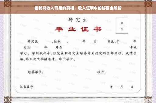 收入证明是当今社会的重要证明材料,其背后隐藏着许多真相和秘密,通过了解收入证明的含义、重要性以及背后的真相和秘密,我们可以更加明智地看待自己,明确努力方向,实现事业成功和个人价值。