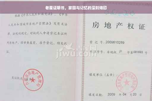 摘要:,,老屋证明书承载着家园与记忆的深刻故事。它见证了岁月的流转,记录了家族的历史。在这份证明书中,每一道痕迹、每一个字迹都诉说着过去的岁月和情感的积淀。它让人们感受到家的温暖,回忆起童年的欢乐时光。这份证明书不仅仅是一份文件,更是一份情感的传承,让人们铭记家园的重要性。