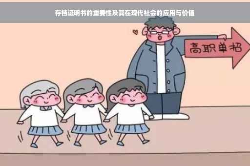 存档证明书是一份重要的文件证明,它在我们的日常生活和工作中扮演着至关重要的角色,作为具有法律效力的文件,存档证明书对某一事实或事件进行记录,并证明其真实存在,随着社会的不断发展和进步,存档证明书的应用越来越广泛,涉及到各个领域。