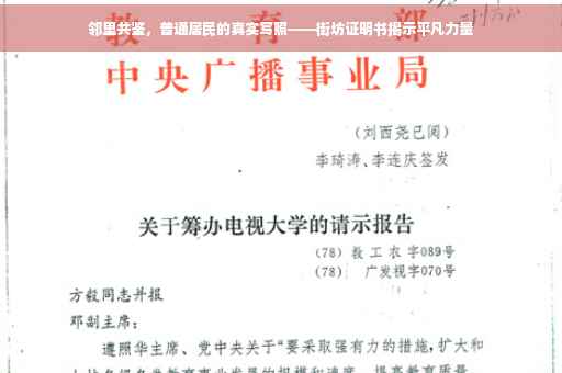 摘要:街坊眼中的他,是一位普通居民的真实写照,通过邻里共鉴的街坊证明书展现了他在社区的生活面貌。他平凡而朴实,与邻里和睦相处,积极参与社区活动,为街坊所熟知和尊敬。这份证明书不仅记录了他的生活点滴,更展现了他作为社区一员的责任和担当。