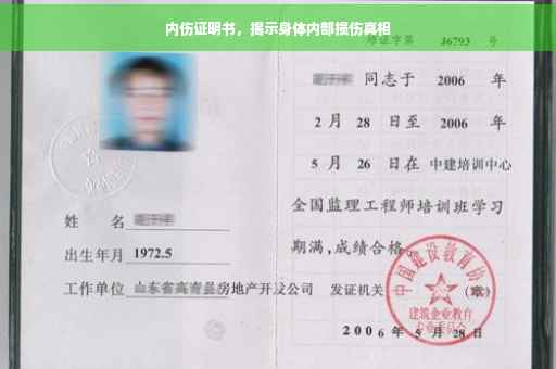 摘要:本内伤证明书旨在详细揭示患者身体内部损伤的真实状况。通过专业的医学检查和评估,确定患者内脏器官是否存在损伤、病变或功能障碍等情况。本证明书为患者提供准确的医学依据,以便其及时了解自身健康状况,并采取有效的治疗措施。也作为医生对患者病情的专业评估和建议,为患者健康保驾护航。