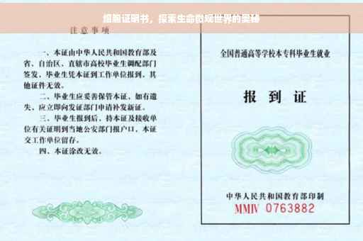 细胞,作为生命的基本单位,其奥秘无穷无尽,随着科技的进步,我们对细胞的研究将越来越深入,细胞证明书作为记录细胞信息的重要文件,将在科研、医疗、生物技术等领域发挥越来越重要的作用,让我们共同期待细胞研究为人类带来的更多惊喜与突破!探索微观世界,揭示生命奥秘!