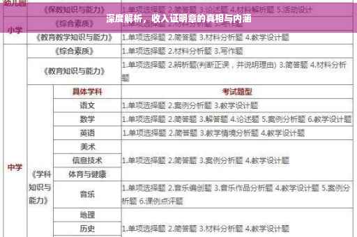 摘要:本文将深入探讨收入证明章的真相与内涵。通过详细解析收入证明章的来源、作用以及在实际应用中的注意事项,帮助读者更加全面地了解这一重要文件。本文将揭示收入证明章的重要性,同时剖析其中可能存在的误区和陷阱。阅读本文,读者将能够更明智地处理与收入证明章相关的事务。