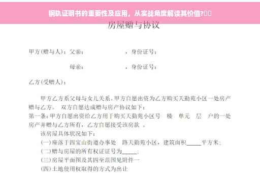 在现代铁路交通领域,钢轨作为关键构件之一,其质量直接关系到列车运行的安全与稳定,钢轨证明书的重要性日益凸显,本文将详细介绍钢轨证明书的作用、内容、编制及应用,以帮助读者更好地了解这一重要文件。
