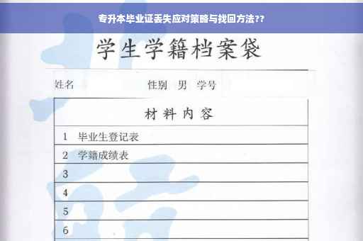 随着教育普及程度的提高,越来越多的人选择通过专升本的方式提升自己的学历,在这个过程中,有时会遇到一些意外情况,比如毕业证丢失,面对这样的情况,很多人会感到焦虑和无助,本文将为大家介绍如何应对专升本毕业证丢失的问题,帮助大家找回丢失的毕业证,以及提供一些建议,以减少类似情况的发生。