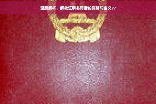 摘要:本文将揭示解救证明书背后的真相,通过深度解析这一文件,带你了解其所包含的关键信息和重要细节。通过本文,你将了解到解救证明书的重要性、其背后的原因以及相关的背景信息。本文还将对解救证明书进行深入探讨,为你揭示其中的真相和含义。