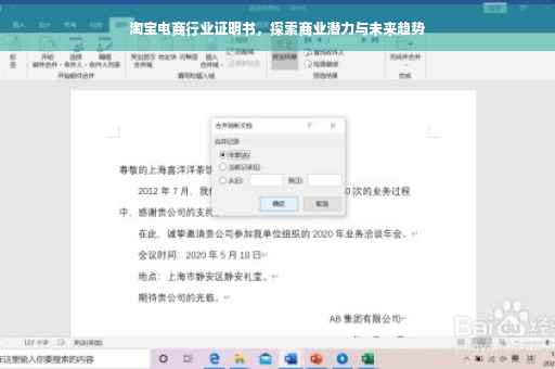 摘要:淘宝电商行业证明书揭示了淘宝的商业潜力与未来趋势。随着互联网的普及和电子商务的飞速发展,淘宝作为中国最大的电商平台之一,持续展现出强大的商业活力和巨大的市场潜力。通过深入探索淘宝的商业生态、用户行为、市场趋势和技术创新等方面,这份证明书为我们揭示了淘宝电商行业的未来趋势和发展方向。