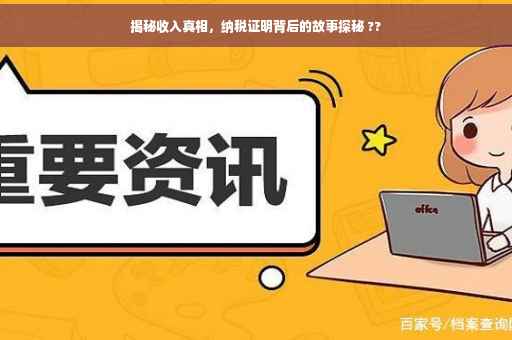 摘要:本文揭示了收入真相,深入探讨了纳税证明背后的故事。通过深入了解,我们发现纳税证明不仅是个人财务状况的证明,更是社会经济发展的见证。文章通过揭示纳税证明的重要性及其背后的故事,呼吁人们关注自己的财务状况,同时促进社会的公平与透明。