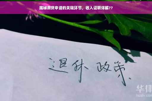 摘要:申请房贷过程中,办房贷收入证明是至关重要的一环。收入证明是银行评估借款人还款能力的主要依据,确保借款人具备稳定的收入来源。本文揭秘了收入证明在房贷申请中的关键作用,帮助读者更好地了解房贷申请流程,顺利获得贷款批准。