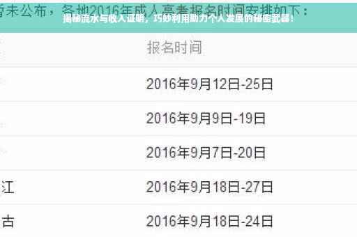 在现代社会,随着经济的发展和竞争的加剧,越来越多的人开始关注个人财务管理和理财规划,在这个过程中,流水和收入证明成为了不可忽视的重要因素,流水和收入证明究竟是什么意思?它们之间有何区别与联系?如何巧妙利用二者助力个人发展?本文将为您一一解析。