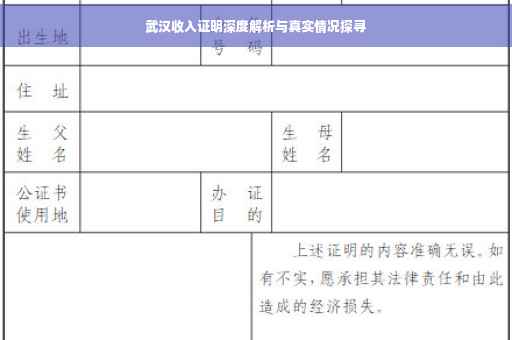 摘要:武汉收入证明涉及多方面内容,本文旨在探寻真实情况并进行深度解析。通过收集数据和资料,揭示武汉市不同行业、职位的收入状况,并分析收入差异的原因。探讨收入证明的重要性及其在实际生活中的应用,如购房、贷款等方面。本文力求为读者提供全面、客观的武汉收入证明信息,帮助人们更好地了解当地经济状况。